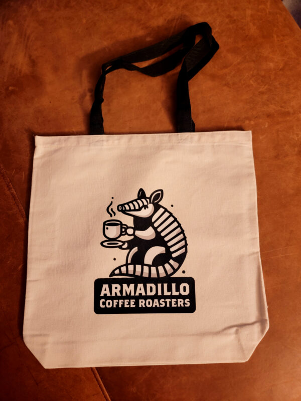Check out this sweet tote! Grab one today and support your local Armadillo!