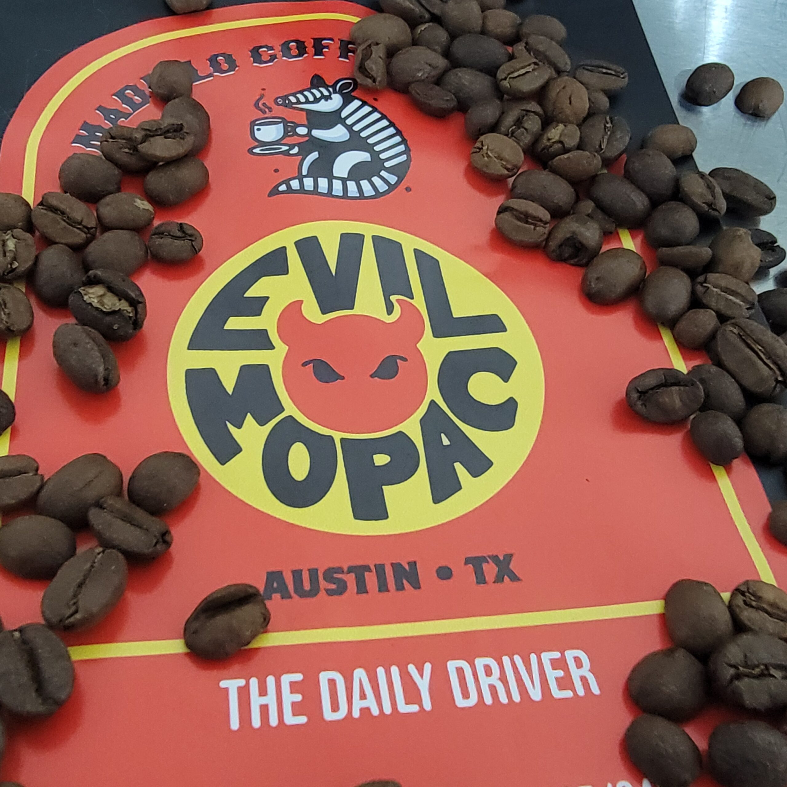 At Armadillo Coffee Roasters, we only team up with true geniuses, so we’ve joined forces with Evil MoPac to bring you The Daily Driver. Born out of those long drives? need a great coffee, the evil mo pac is the one you need. With a blend of smooth, crisp, and balanced to perfection this coffee allows you to get through those long drives.